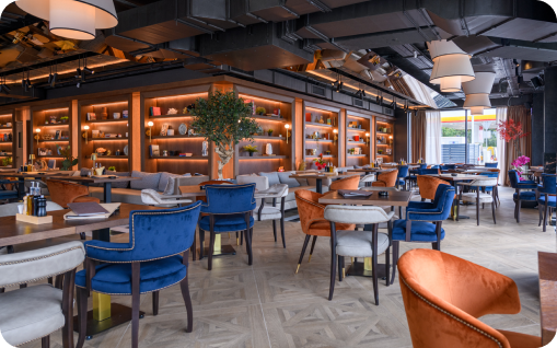U Dolly Bell restoranima, enterijer takođe igra veliku ulogu u celokupnom iskustvu naših gostiju. Trudili smo se da naši enterijeri prate duh svake lokacije, tako da naš restoran na Kopaoniku odiše planinskom estetikom, stvarajući topao i prijatan ambijent, dok je u restoranu Dolly Bell Java u prvom planu predivan panoramski pogled. Dolly Bell Sava Centar, smešten u jednom od arhitektonskih bisera Beograda, svojim enterijerom prati posebnost i stil zgrade u kojoj se nalazi. Bez obzira na lokaciju, svaki naš restoran nudi poseban spoj estetike i funkcionalnosti, a enterijeri su osmišljeni i do najsitnijih detalja.